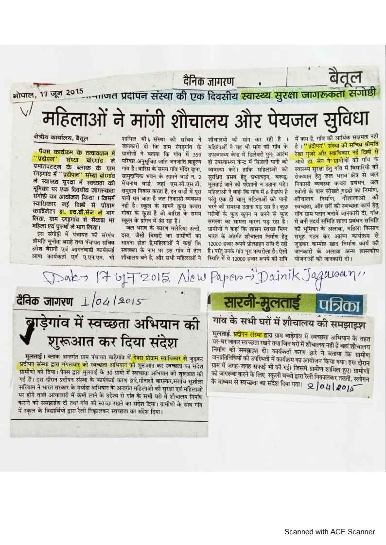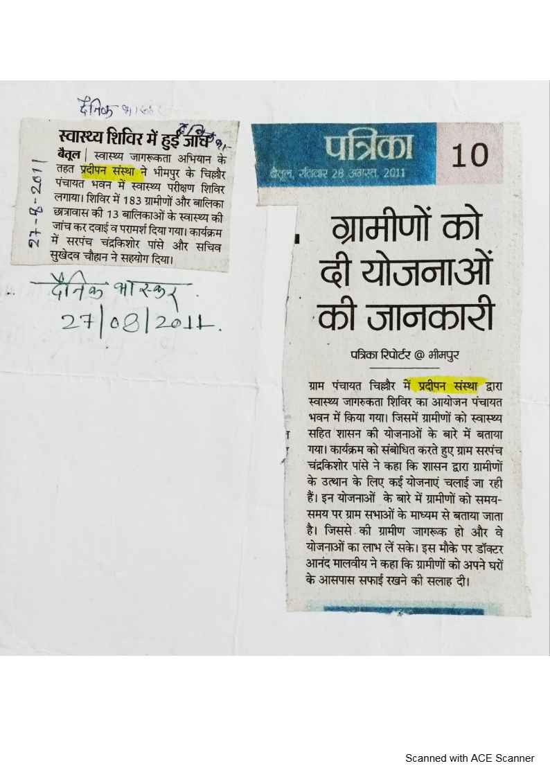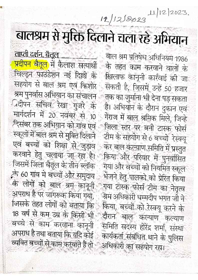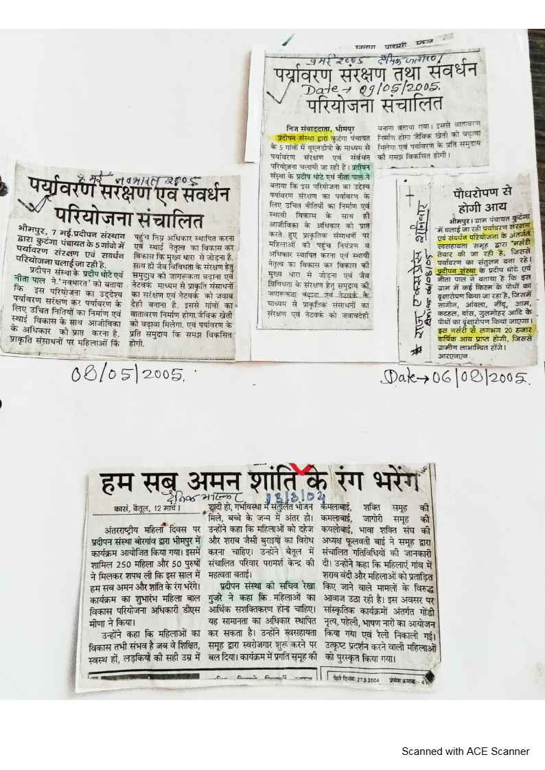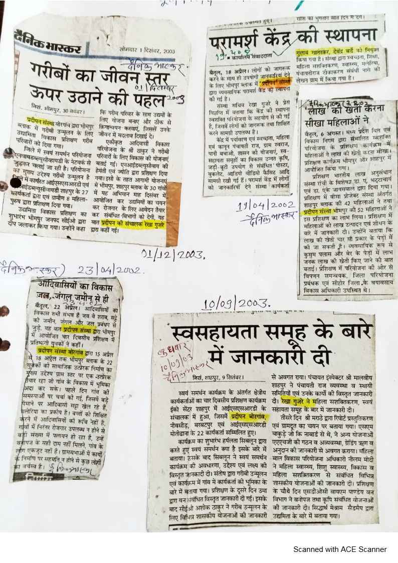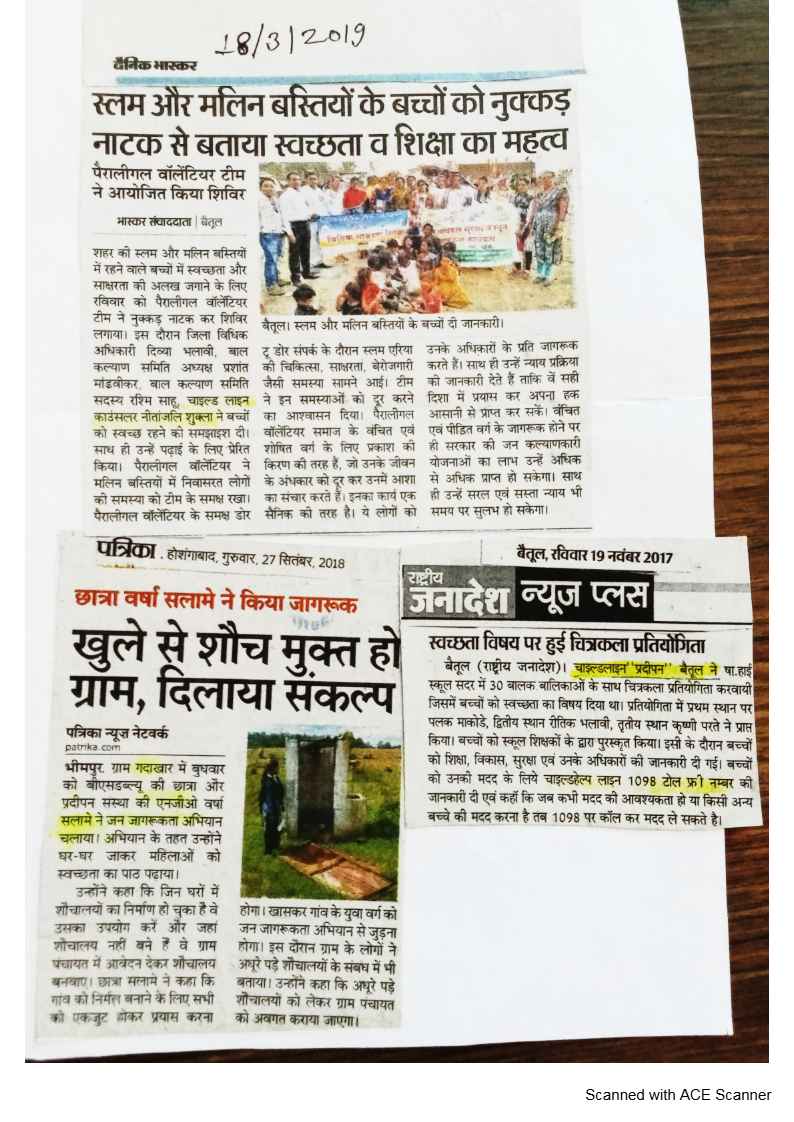 Below are newspaper clippings showcasing our activities and impact across Betul and Madhya Pradesh.