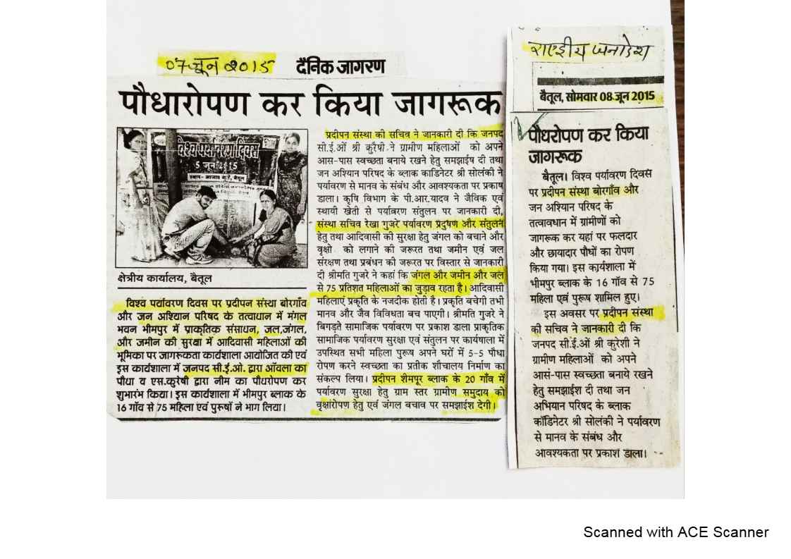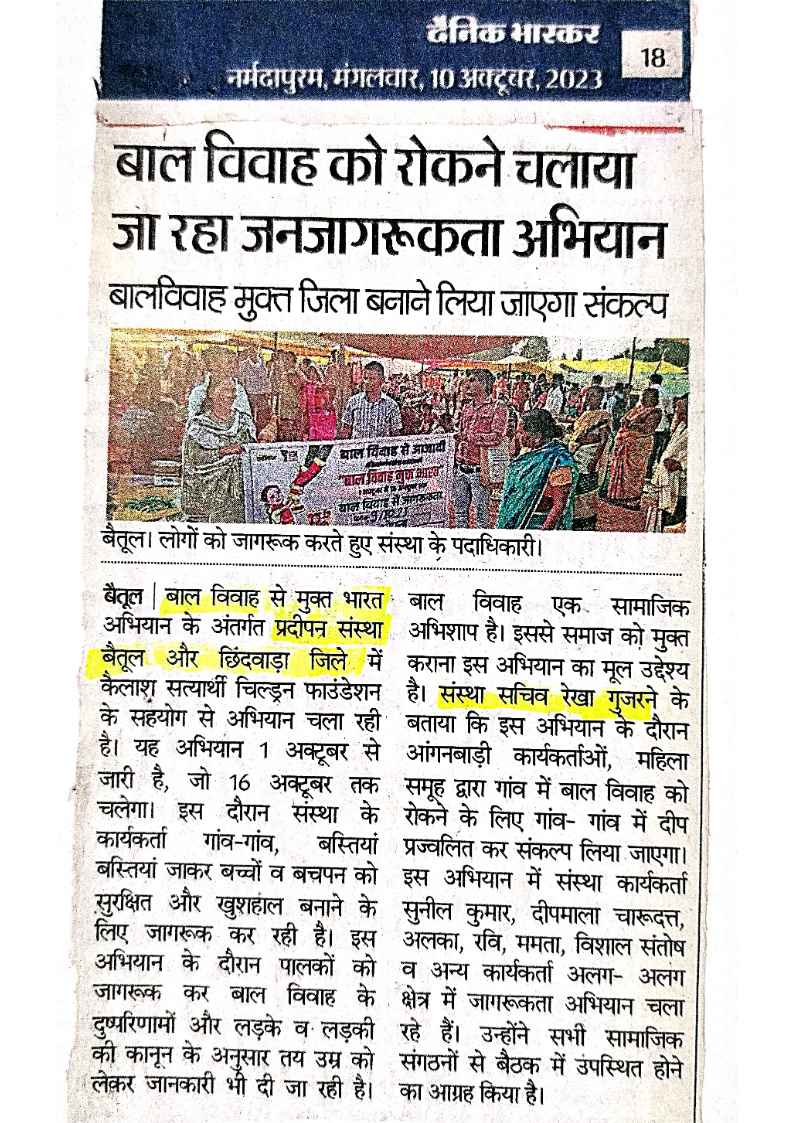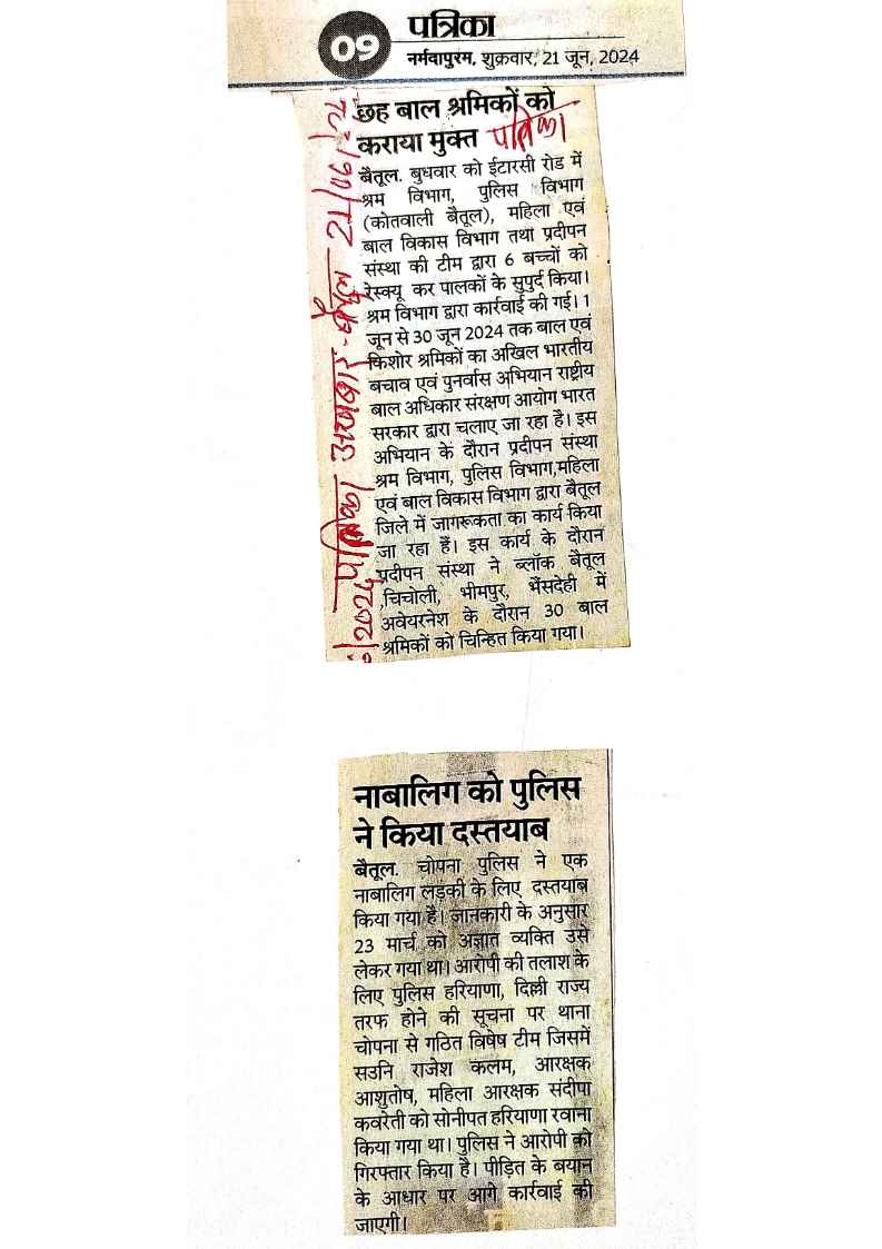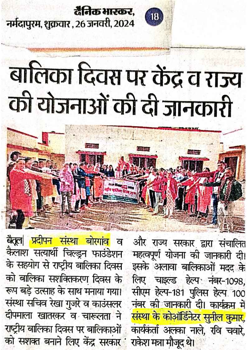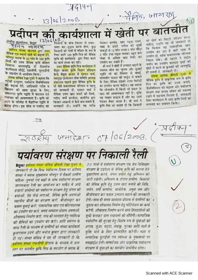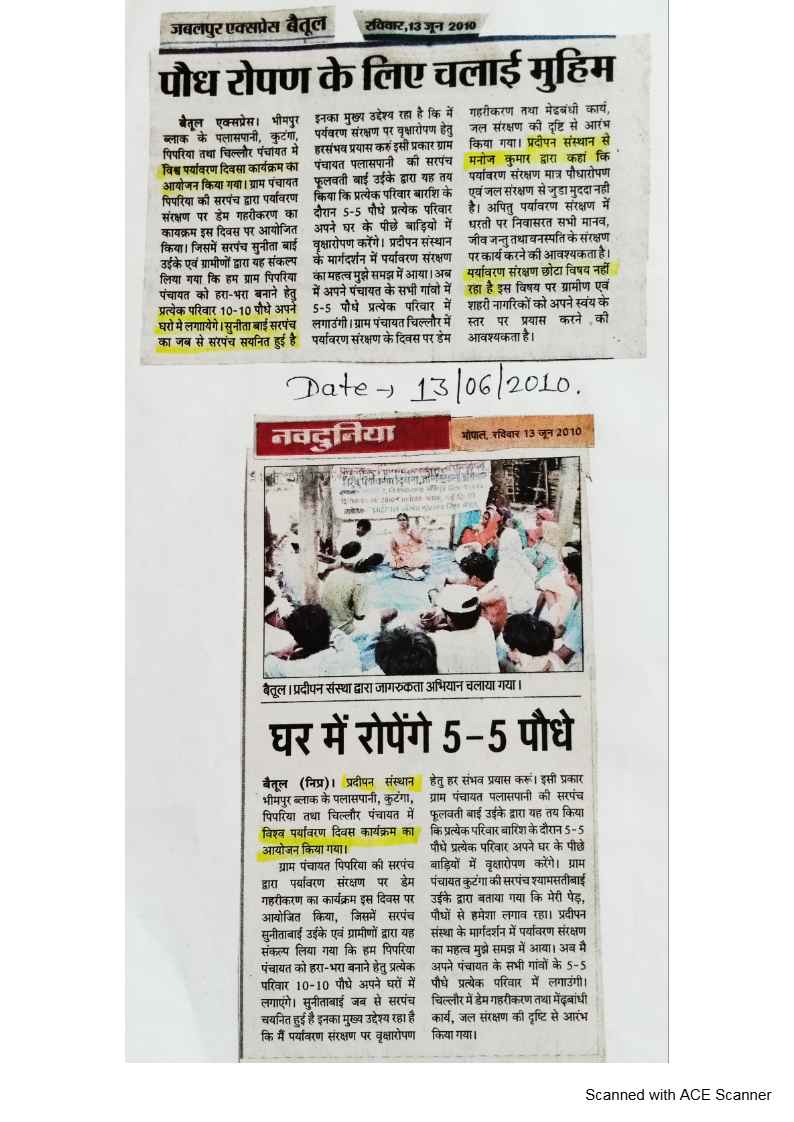Below are newspaper clippings showcasing our activities and impact across Betul and Madhya Pradesh.