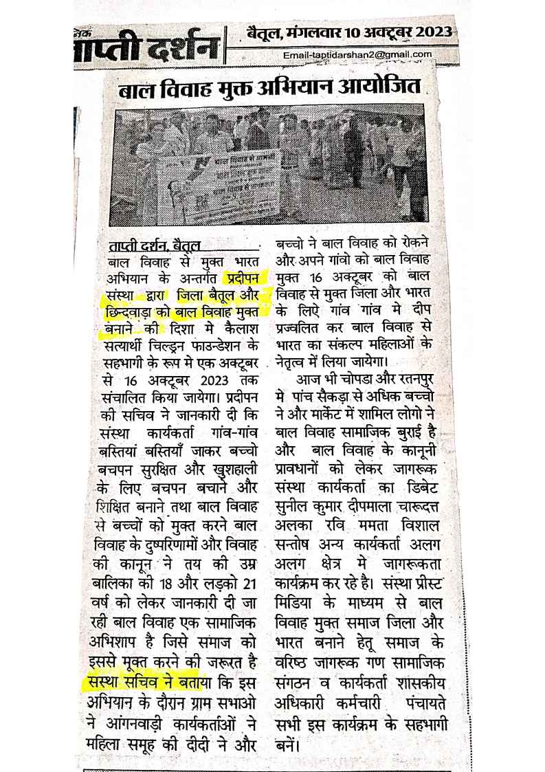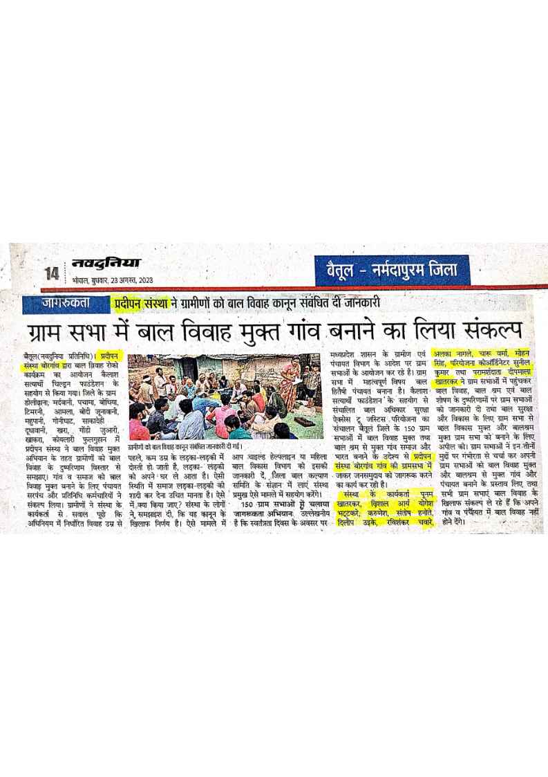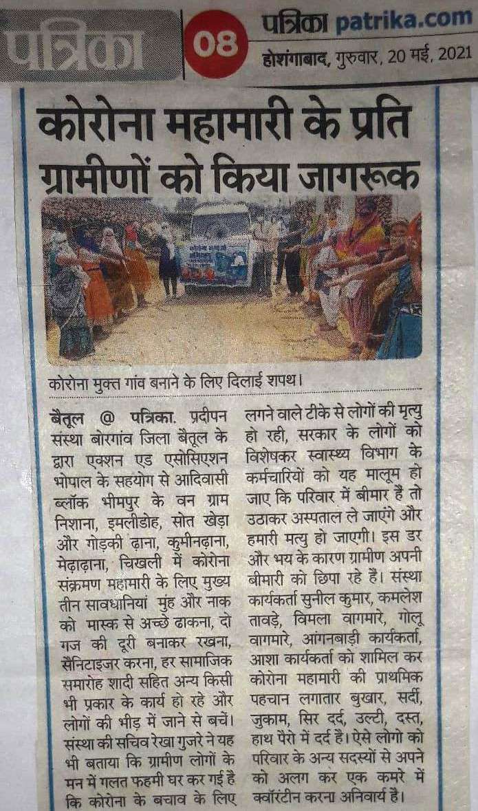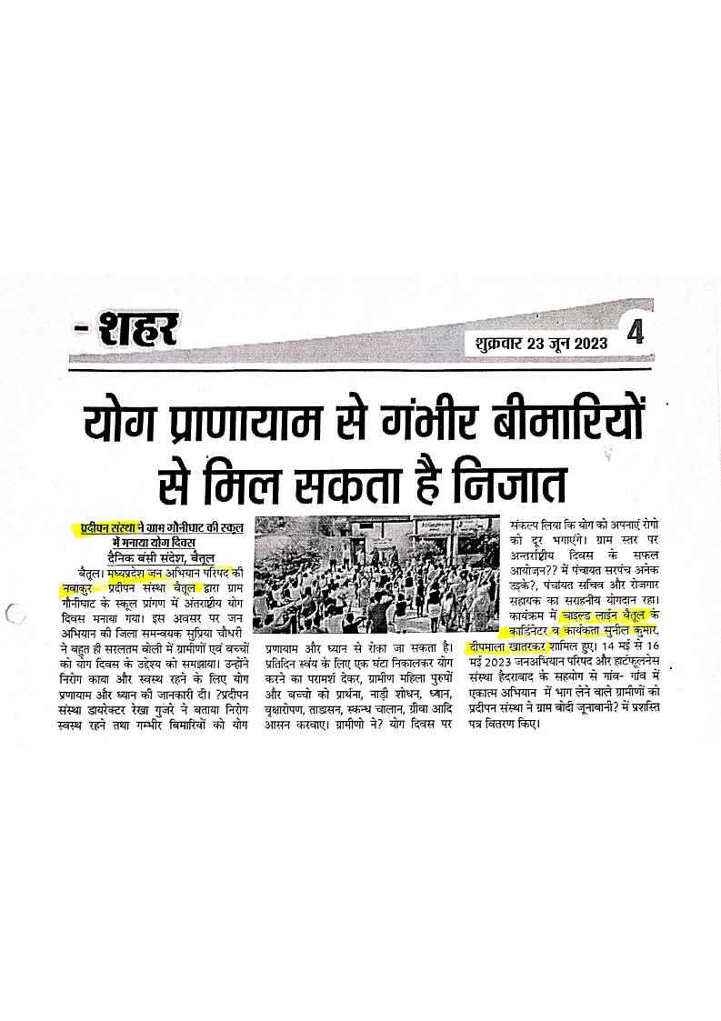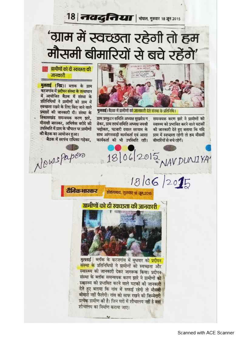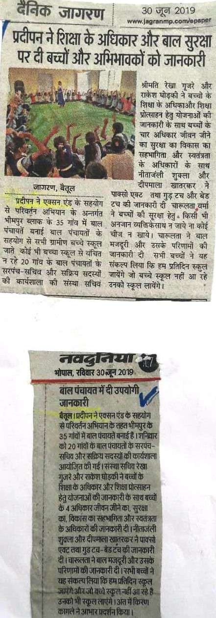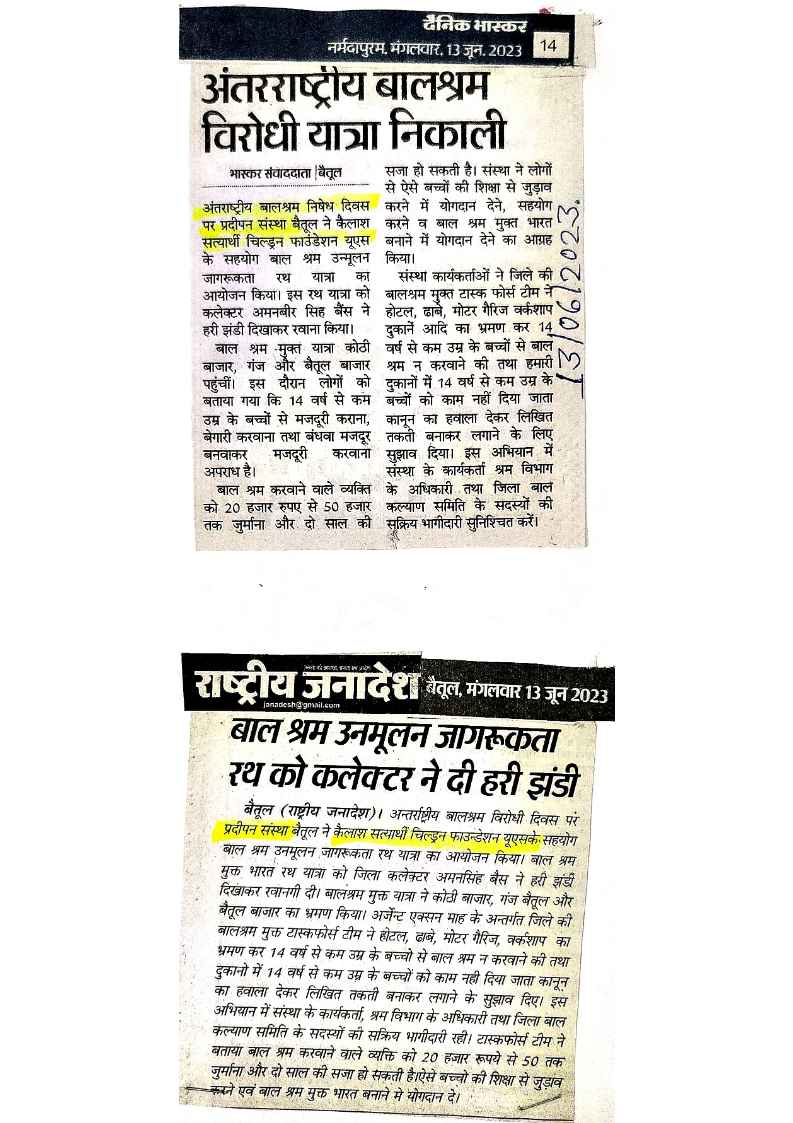 Below are newspaper clippings showcasing our activities and impact across Betul and Madhya Pradesh.
