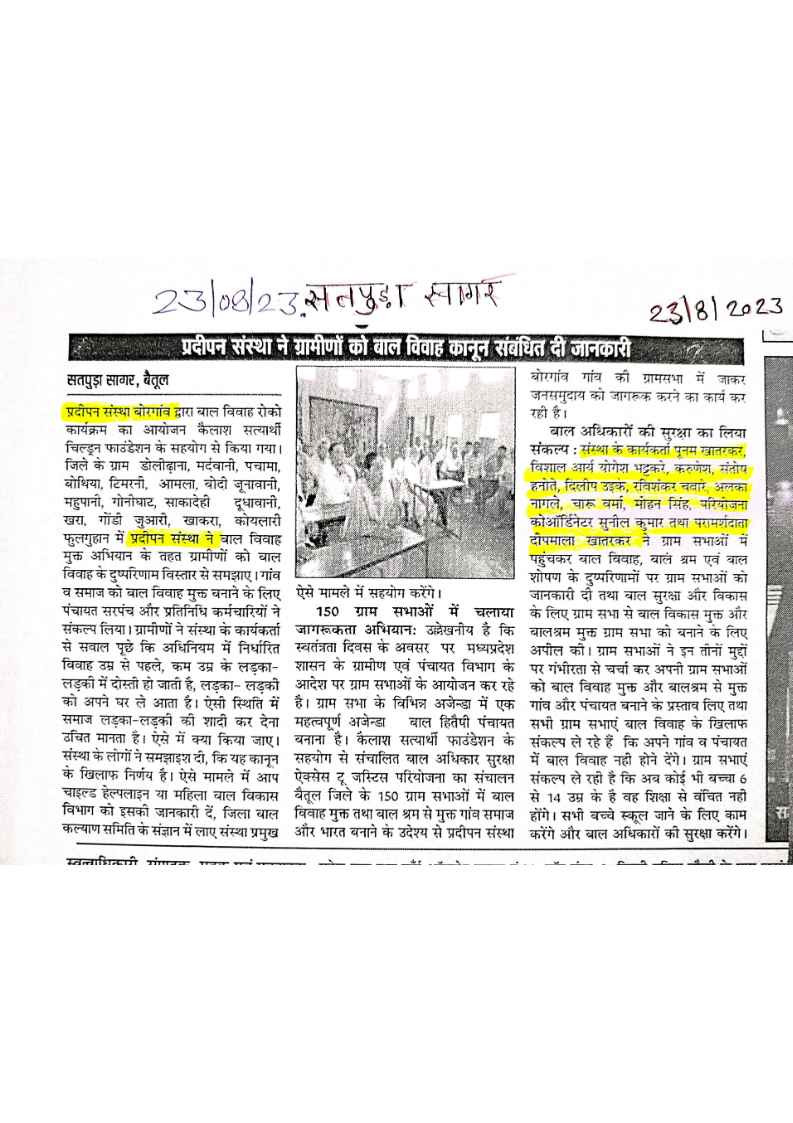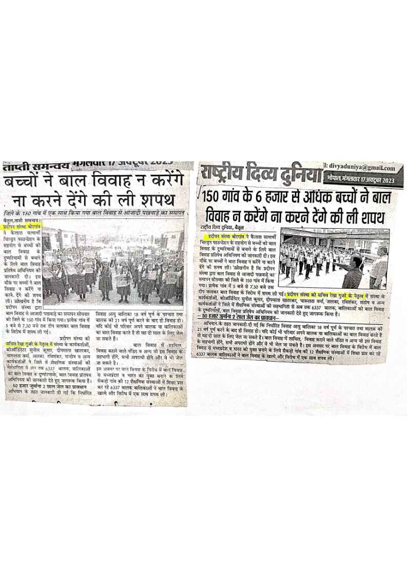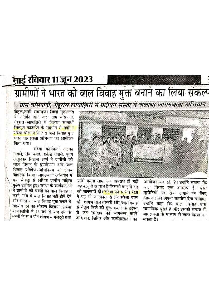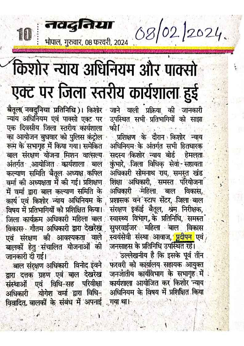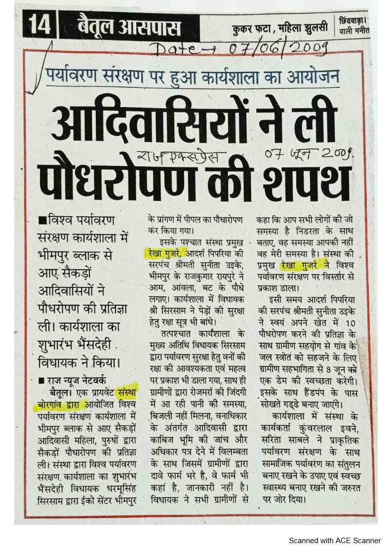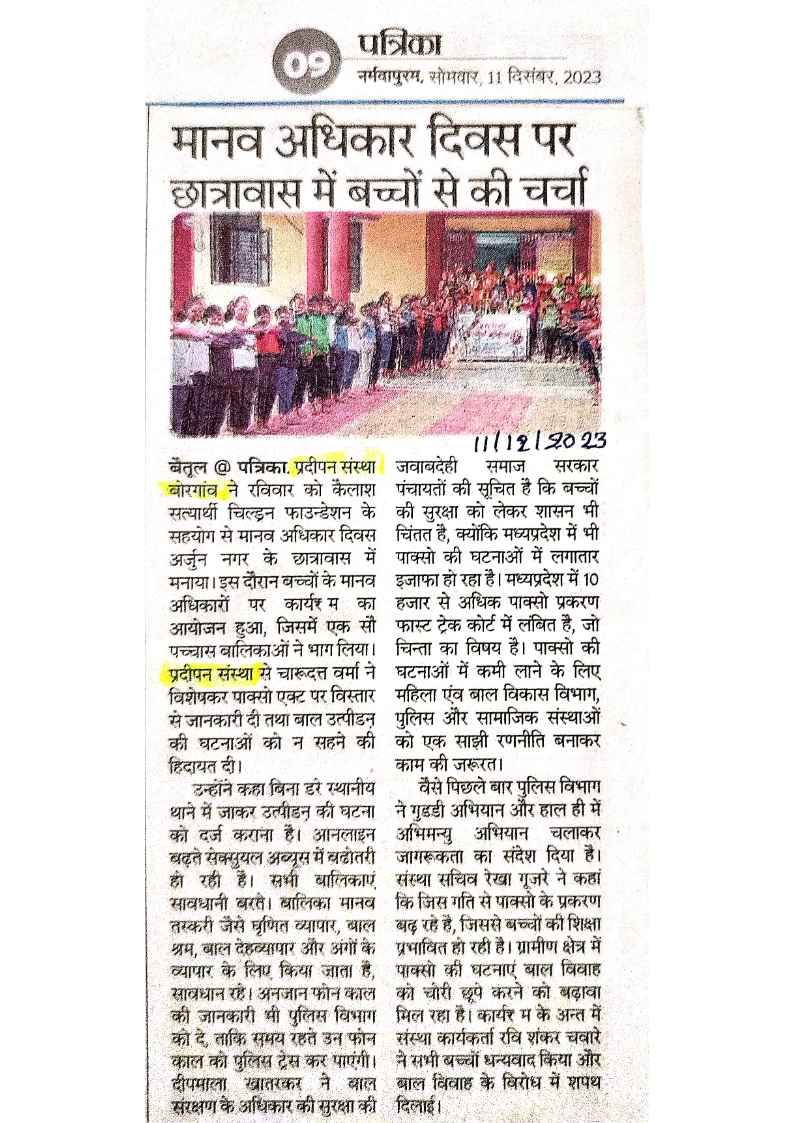 Below are newspaper clippings showcasing our activities and impact across Betul and Madhya Pradesh.