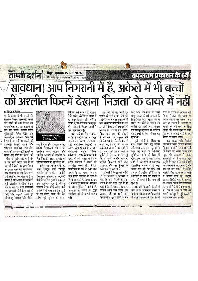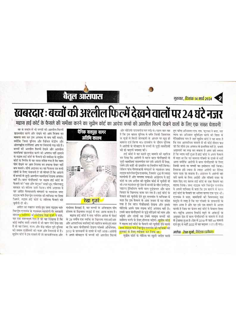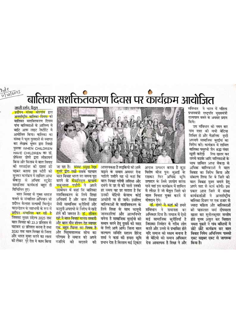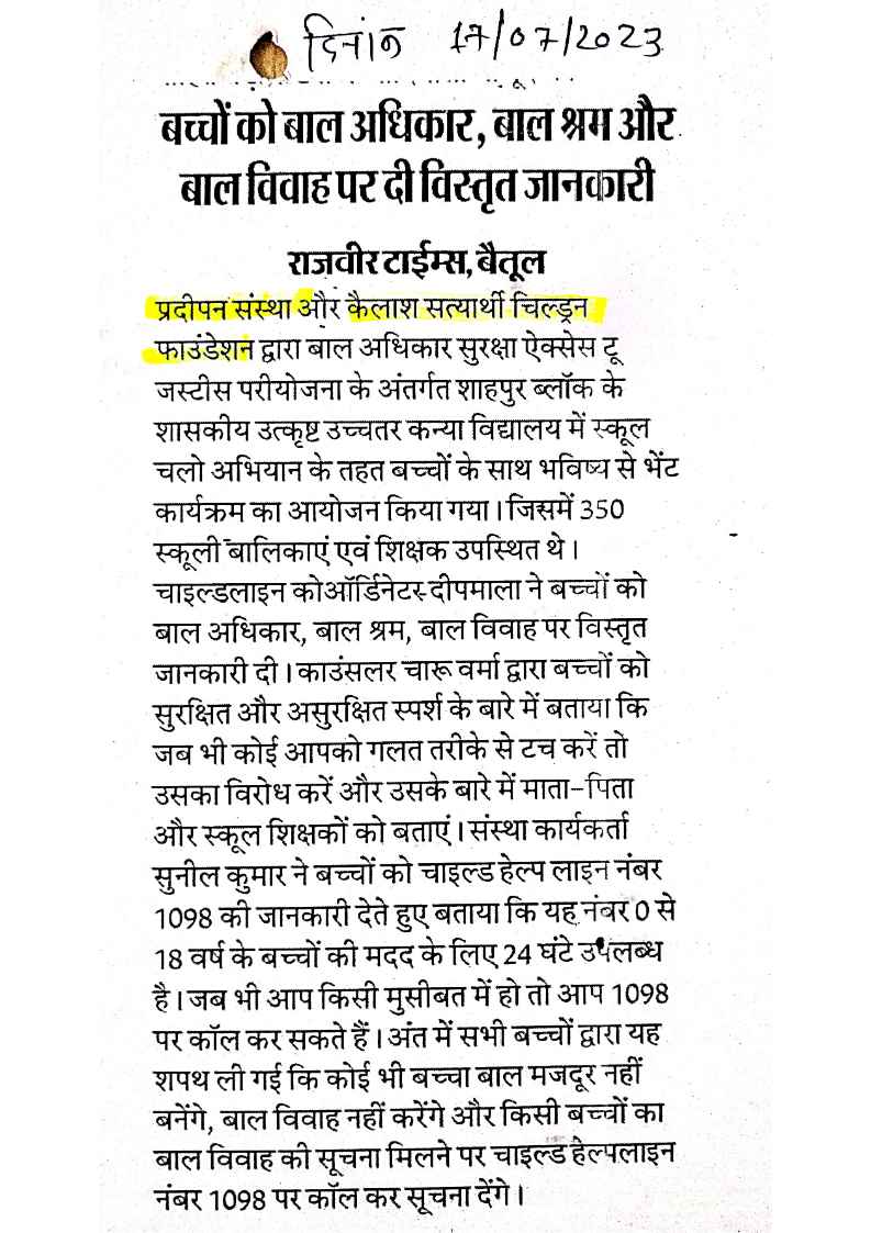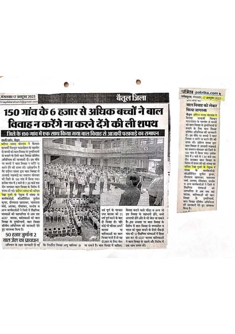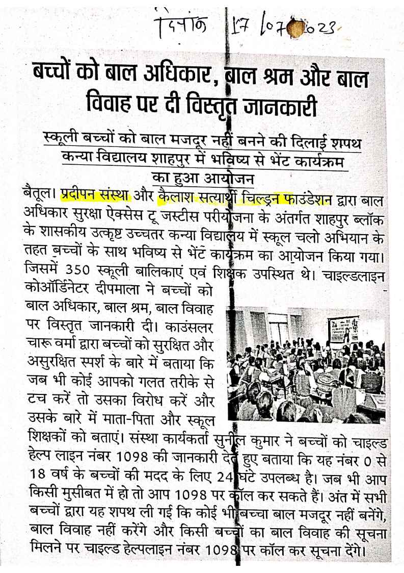 Below are newspaper clippings showcasing our activities and impact across Betul and Madhya Pradesh.