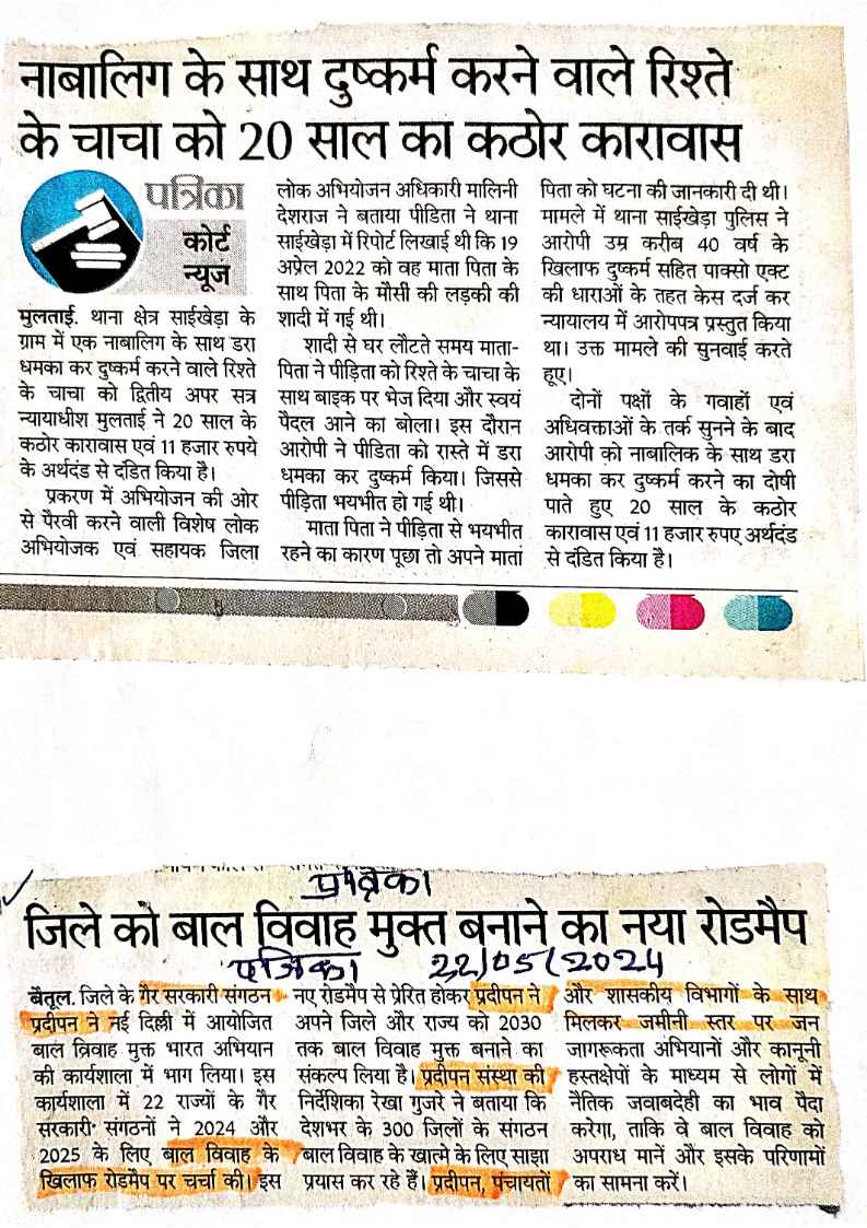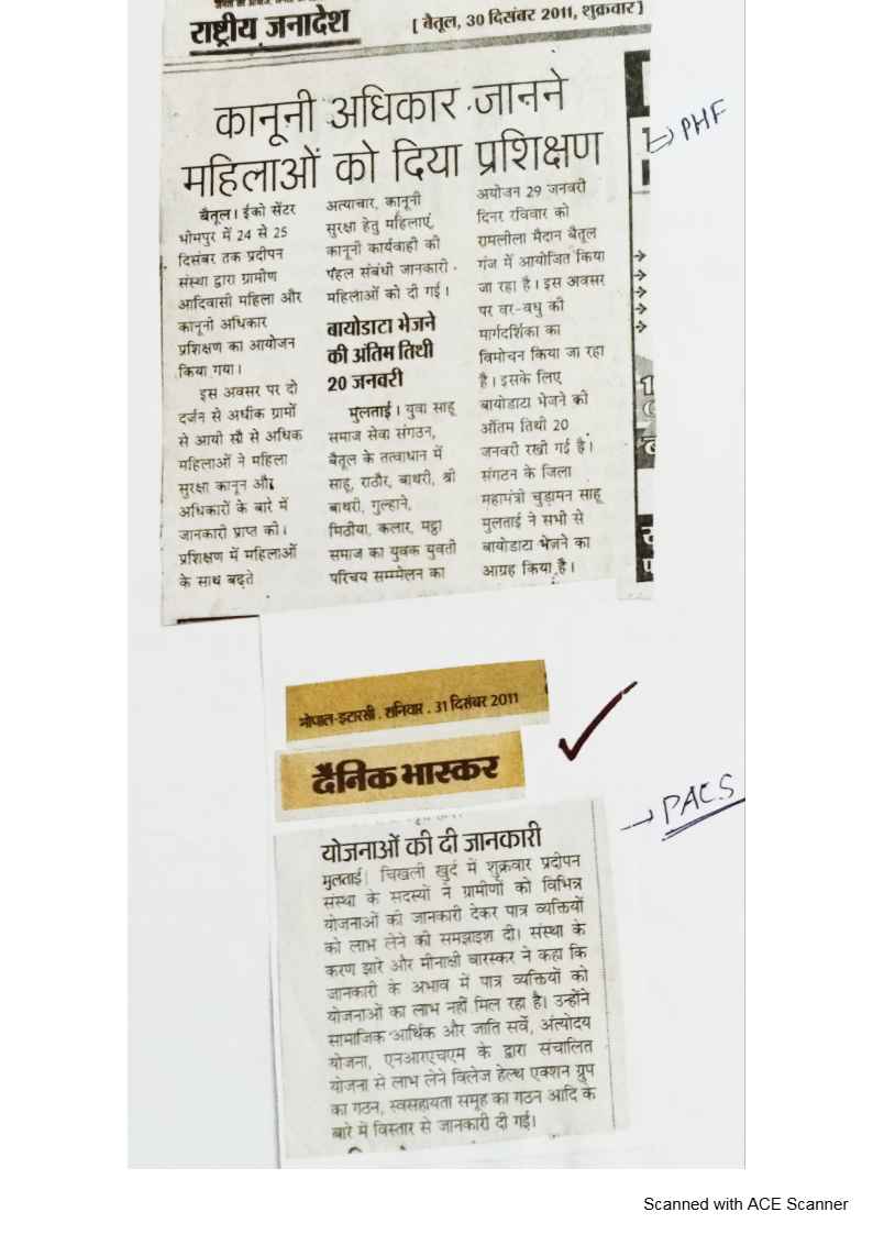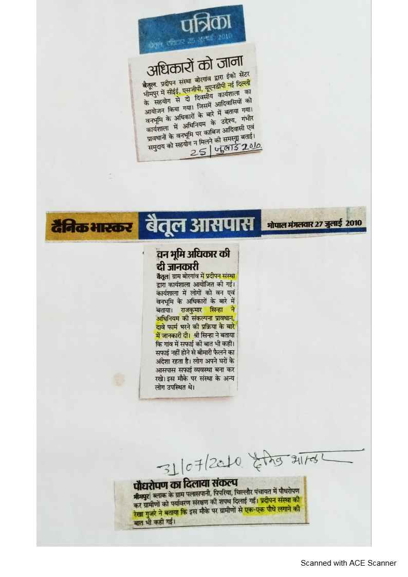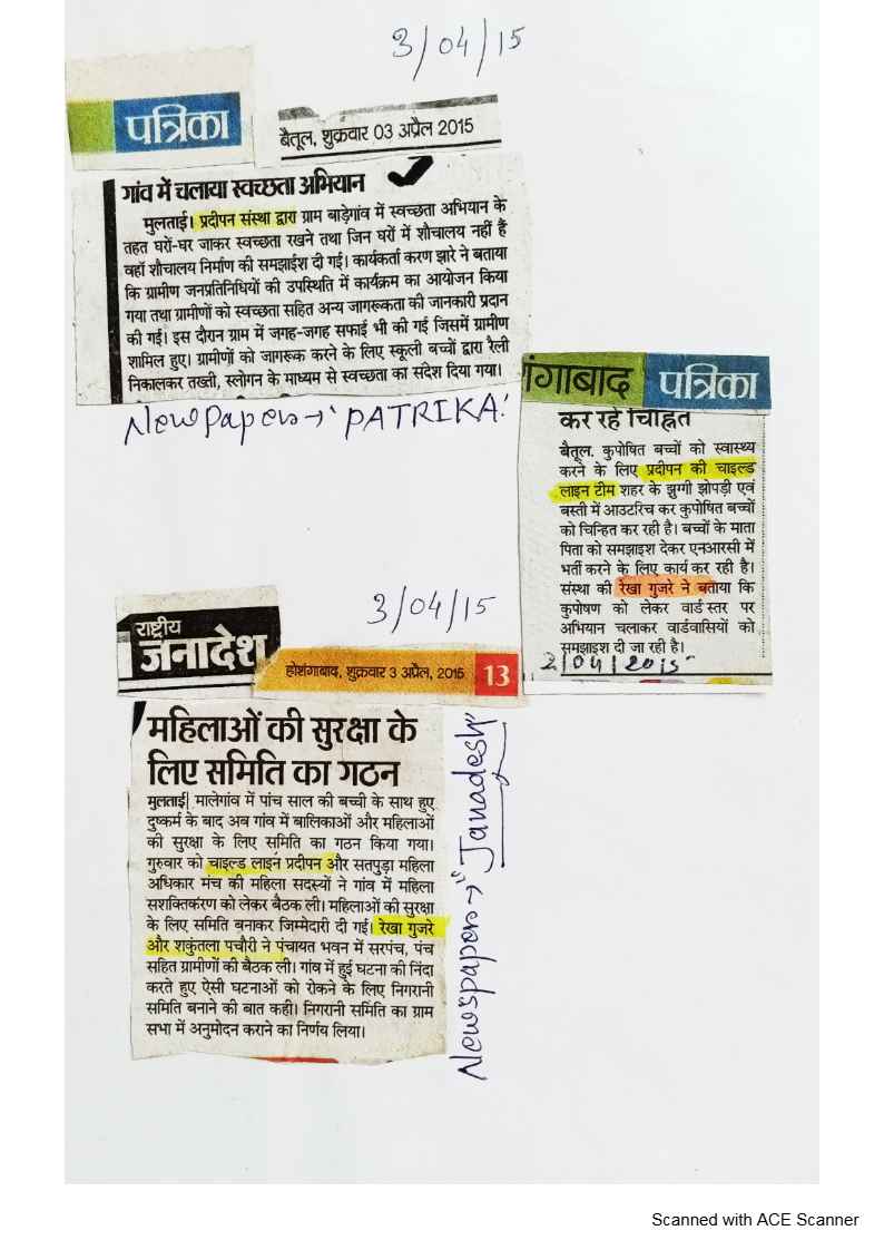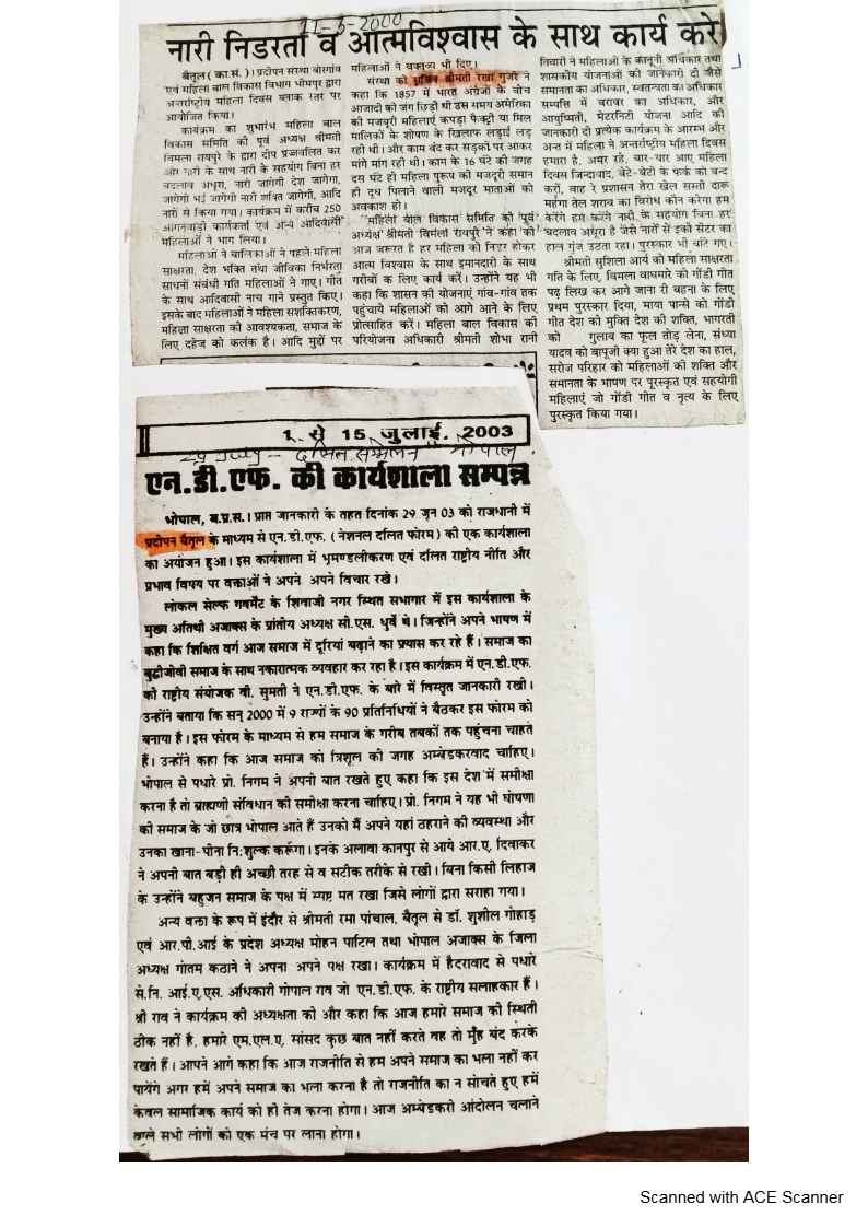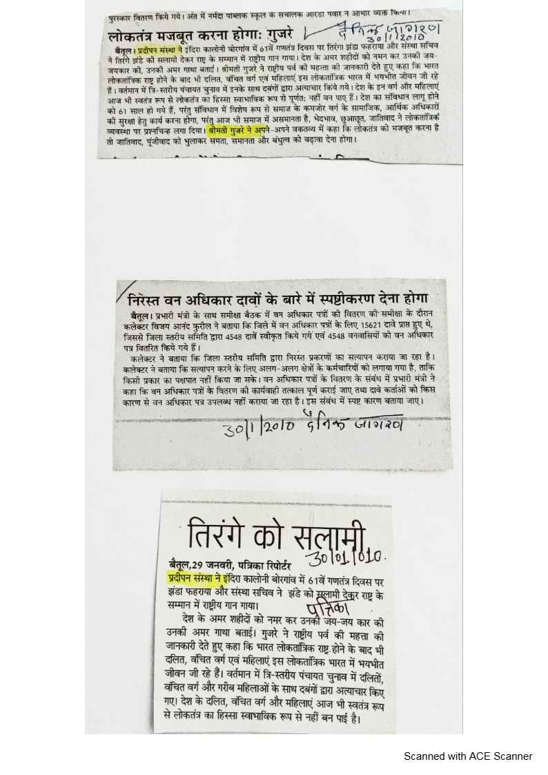 Below are newspaper clippings showcasing our activities and impact across Betul and Madhya Pradesh.