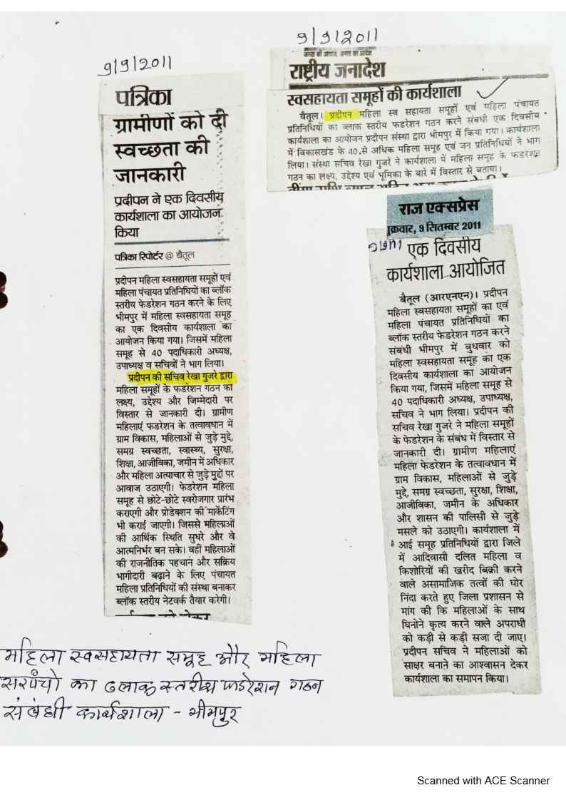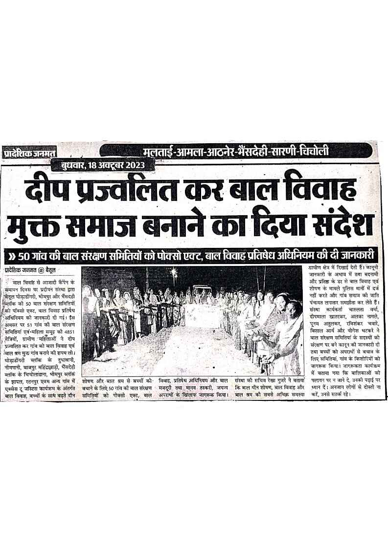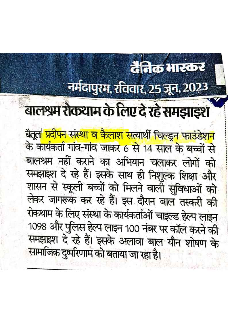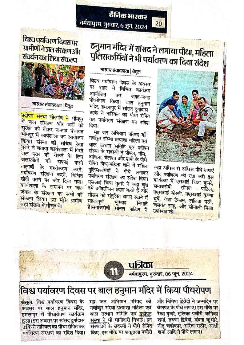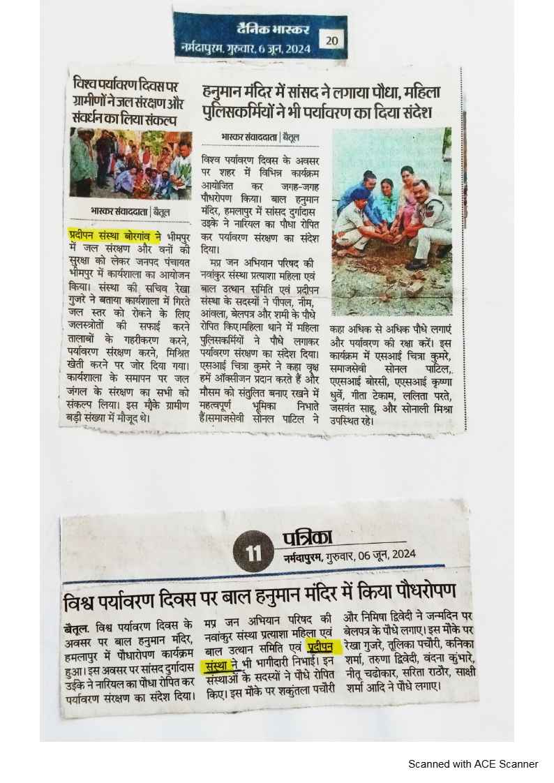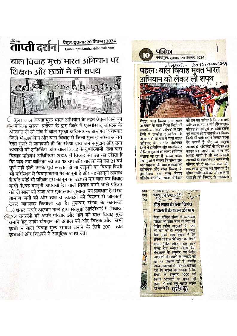 Below are newspaper clippings showcasing our activities and impact across Betul and Madhya Pradesh.