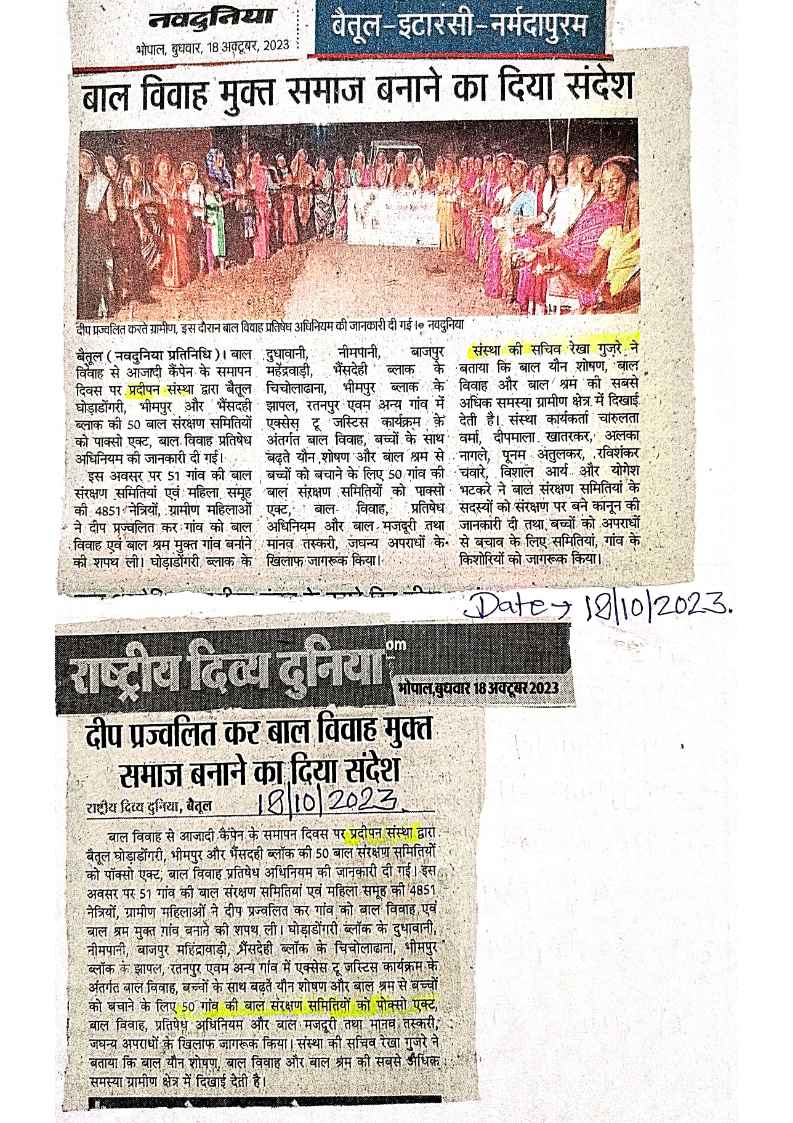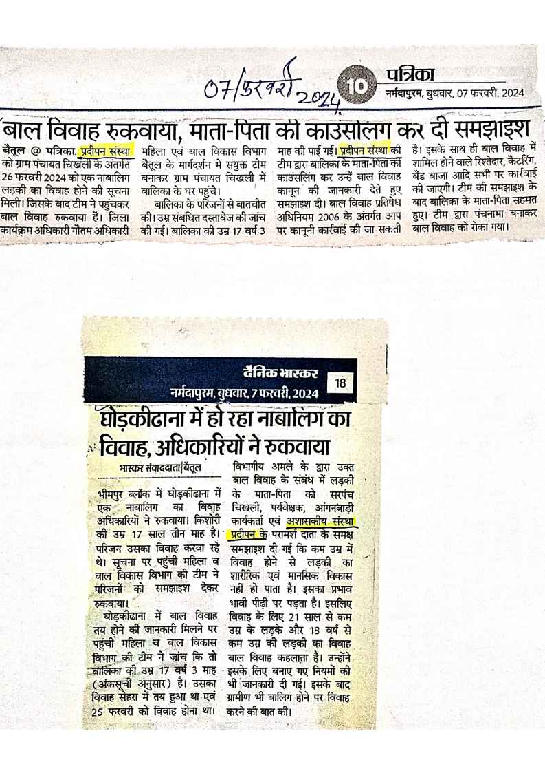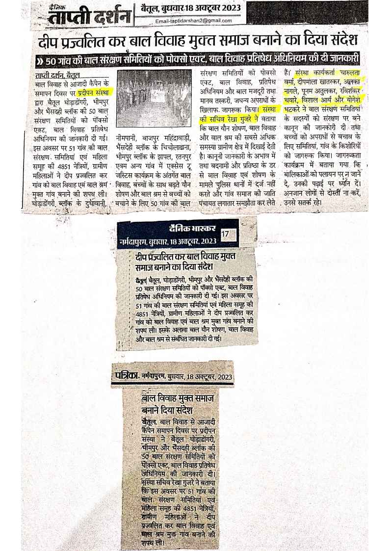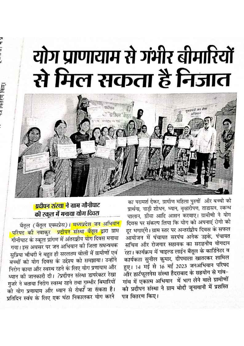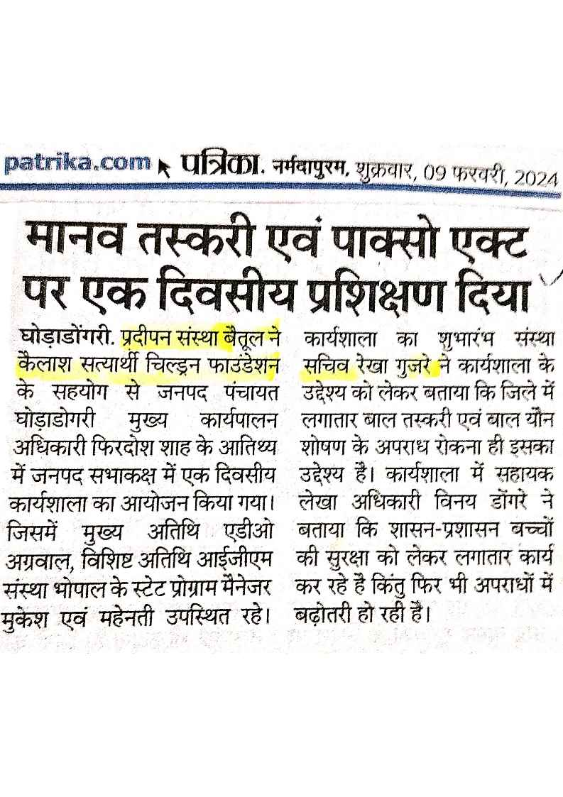 Below are newspaper clippings showcasing our activities and impact across Betul and Madhya Pradesh.