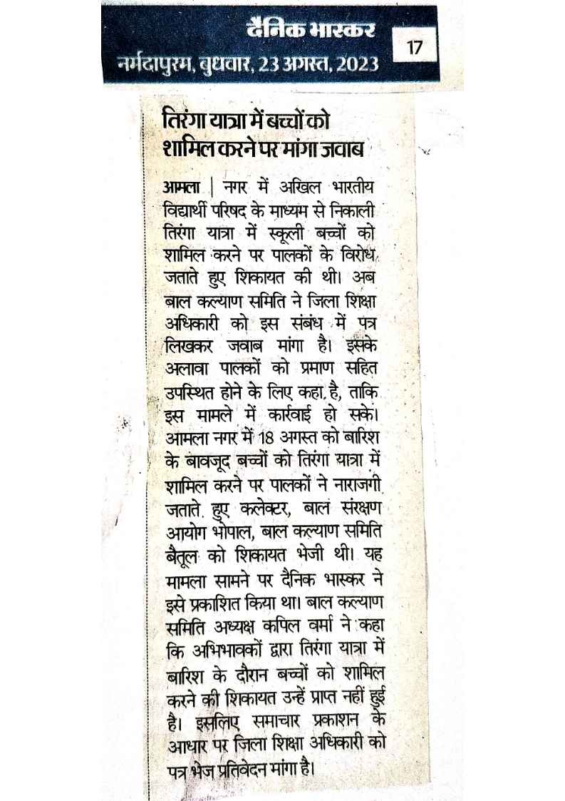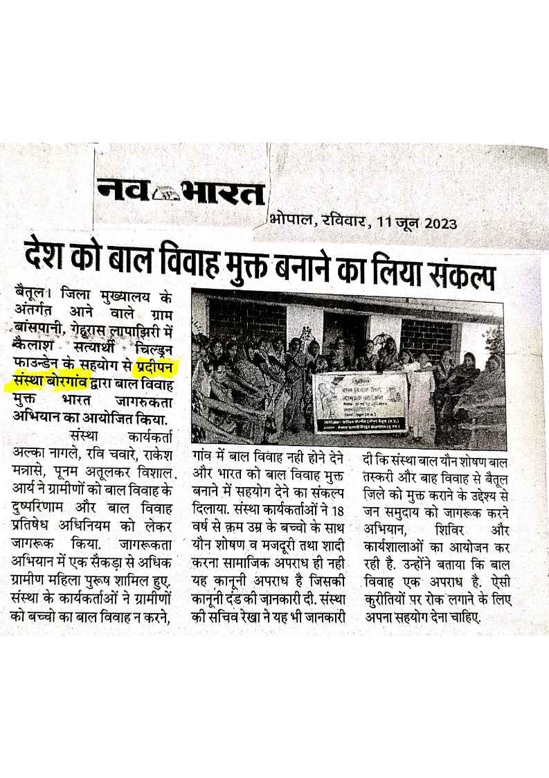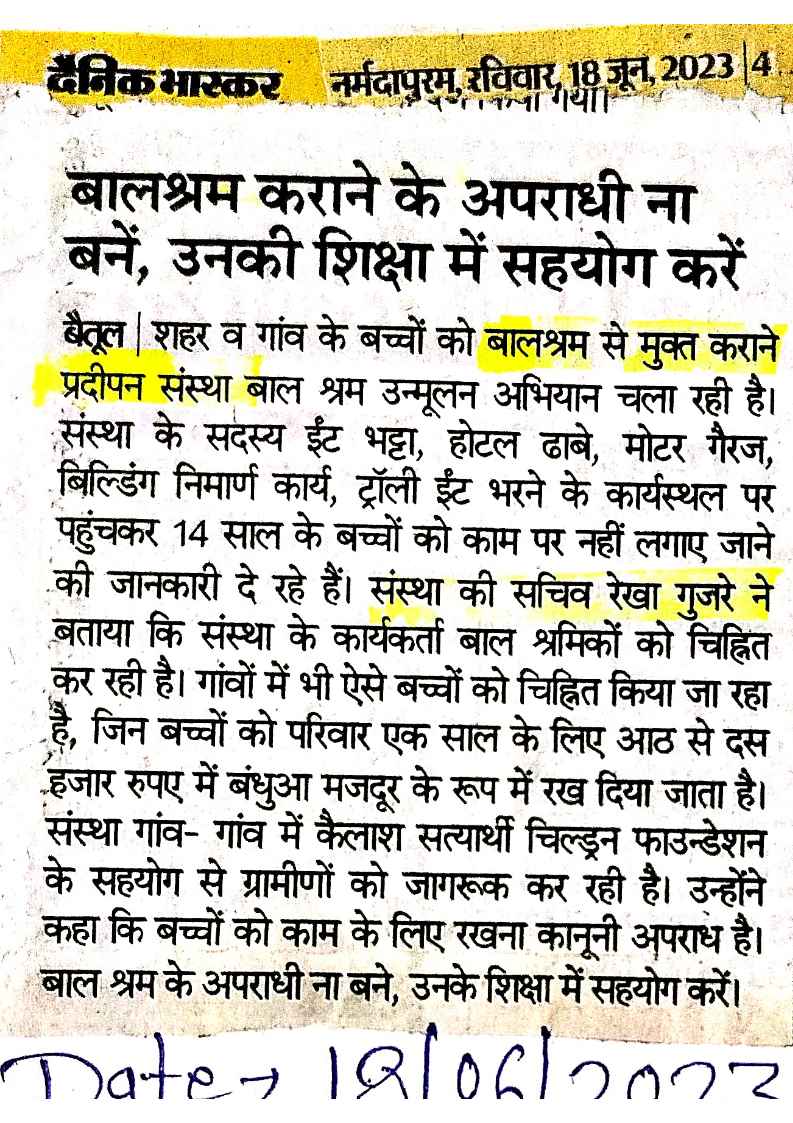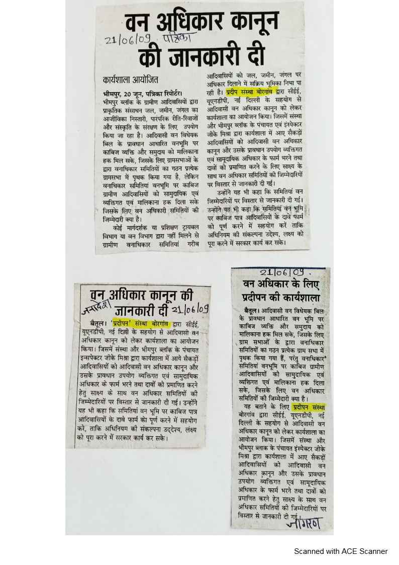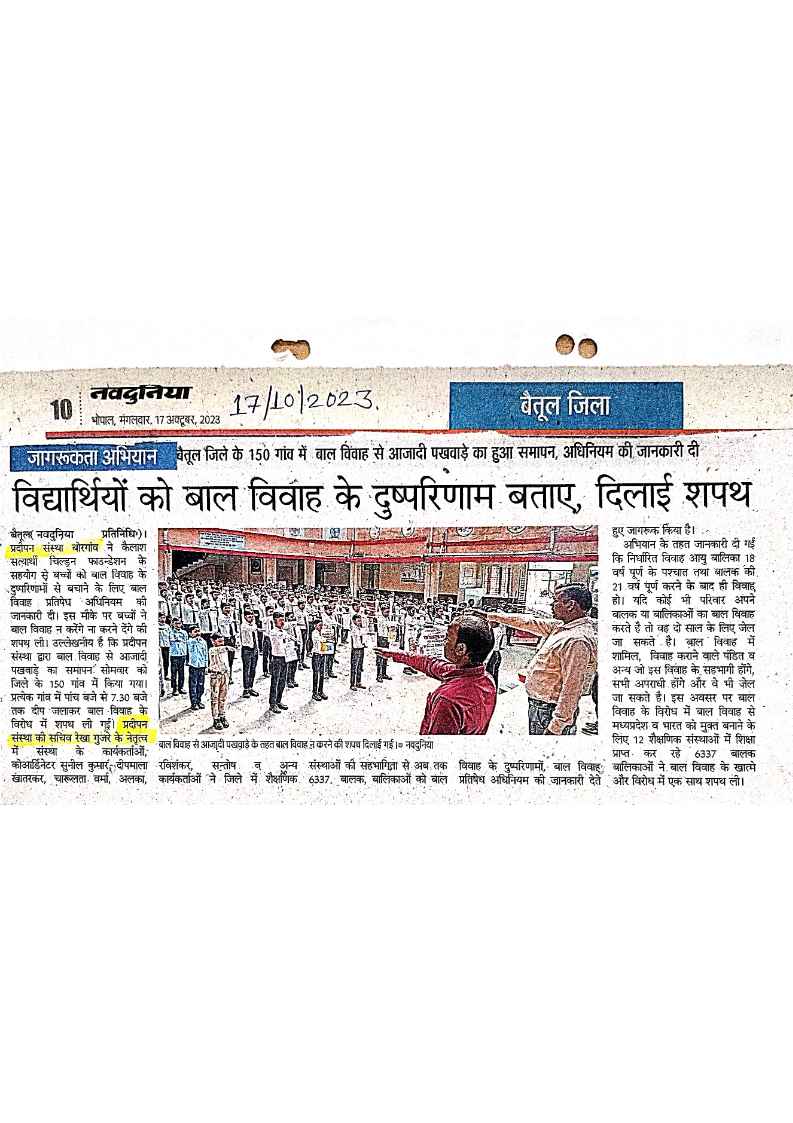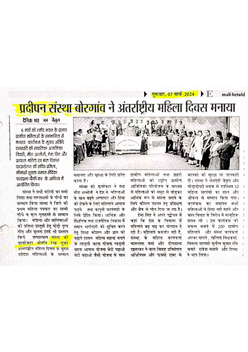 Below are newspaper clippings showcasing our activities and impact across Betul and Madhya Pradesh.