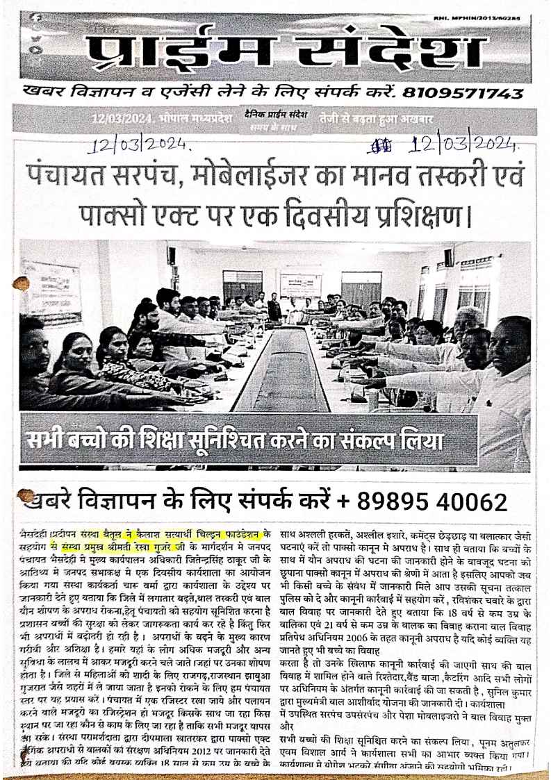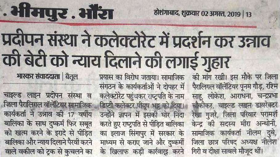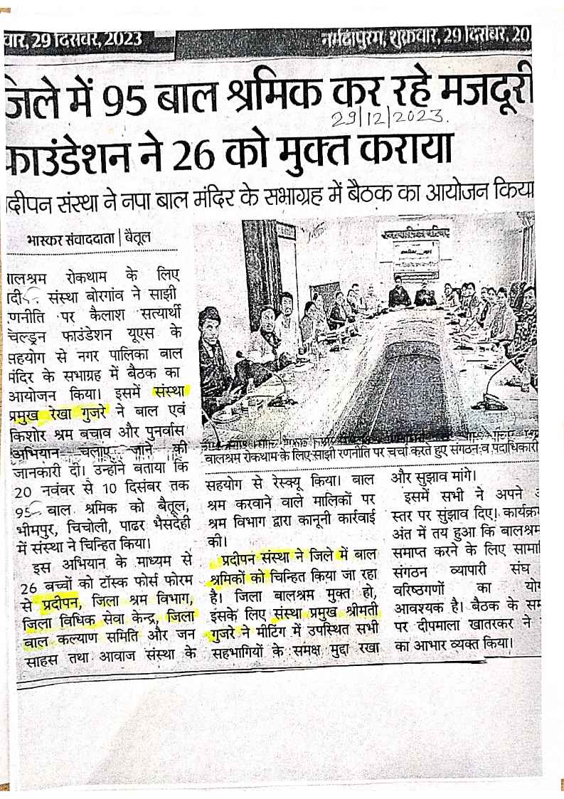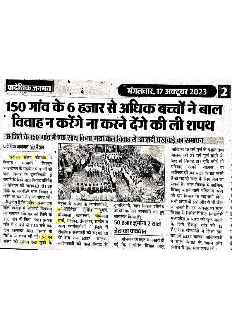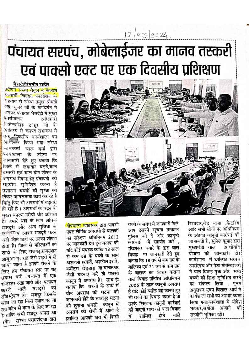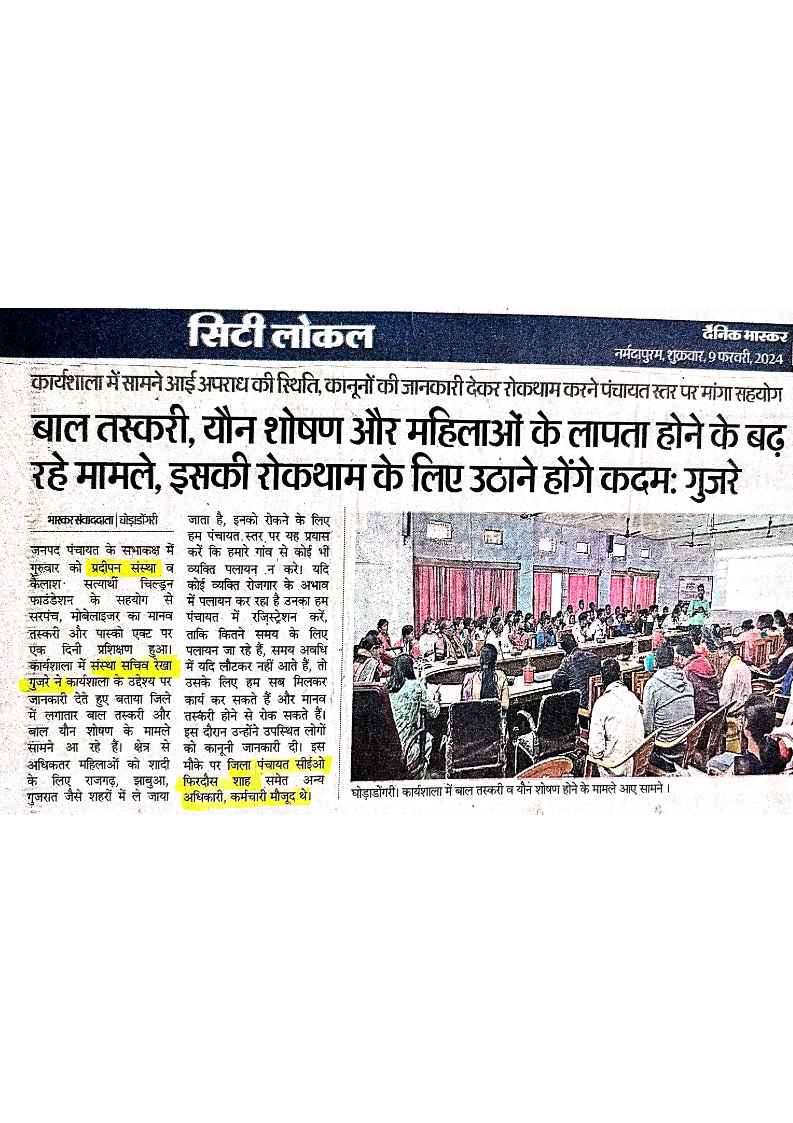 Below are newspaper clippings showcasing our activities and impact across Betul and Madhya Pradesh.