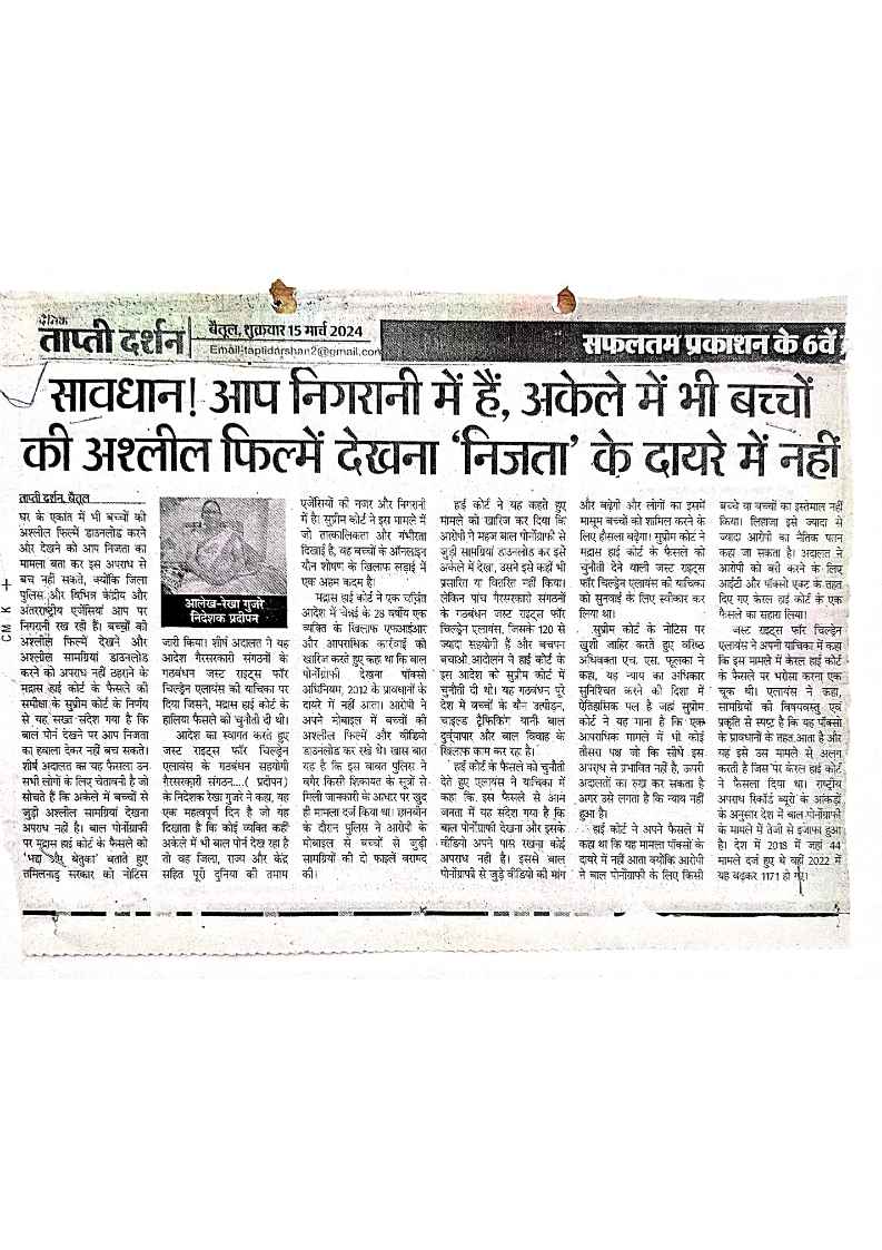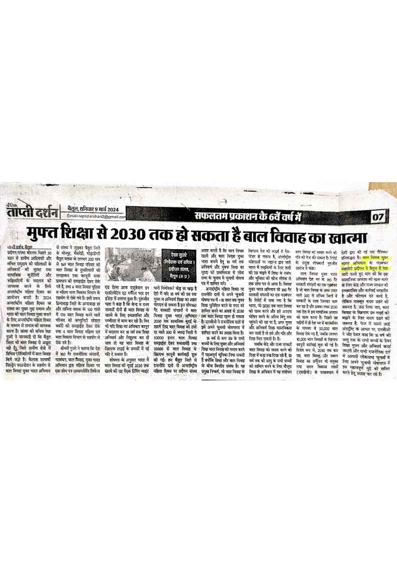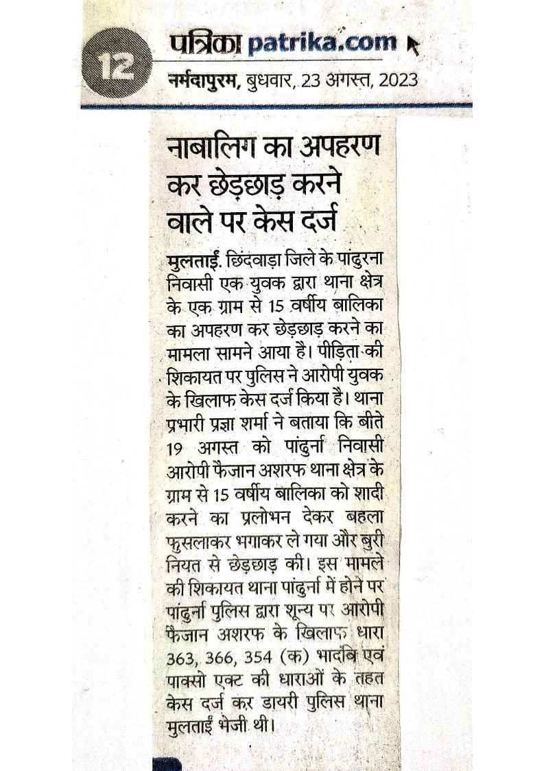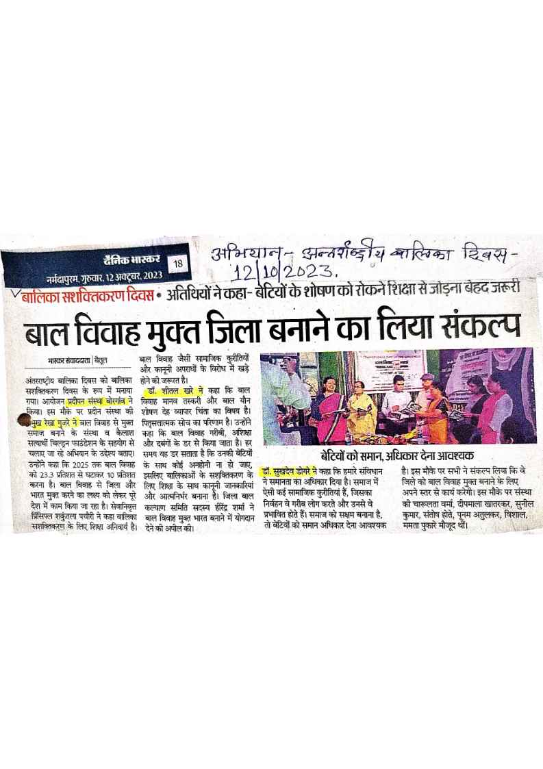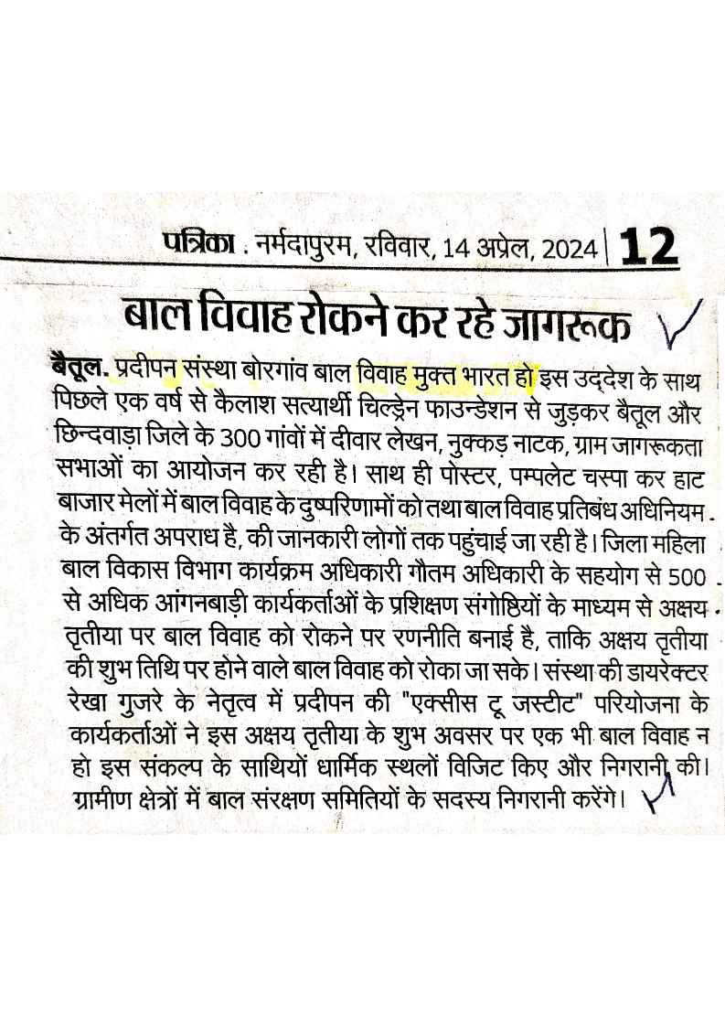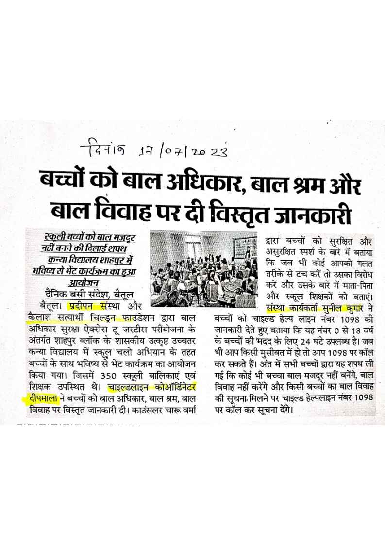 Below are newspaper clippings showcasing our activities and impact across Betul and Madhya Pradesh.